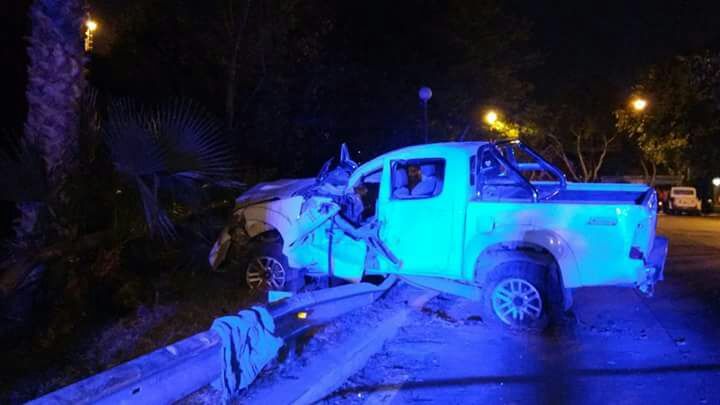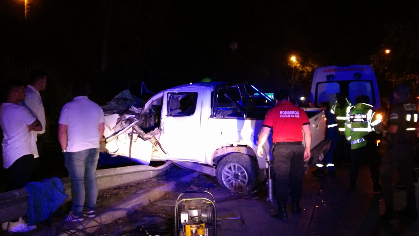 El vehículo, una Toyota Hilux blanca, quedó con su frente destrozado (el más dañado es el lateral izquierdo) producto de impactar contra un poste y luego golpear el guardarraíl. Tal fue la violencia del choque que debió intervenir Bomberos para cortar los hierros y extraer a los dos jóvenes (testigos dicen que esa tarea se demoró, que personal especializado llegó varios minutos después).