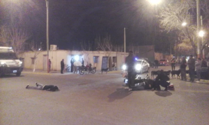 Este viernes, alrededor de las 22, dos jóvenes que iban en moto quedaron tendidos en el pavimento luego de protagonizar un choque con una camioneta Chevrolet.