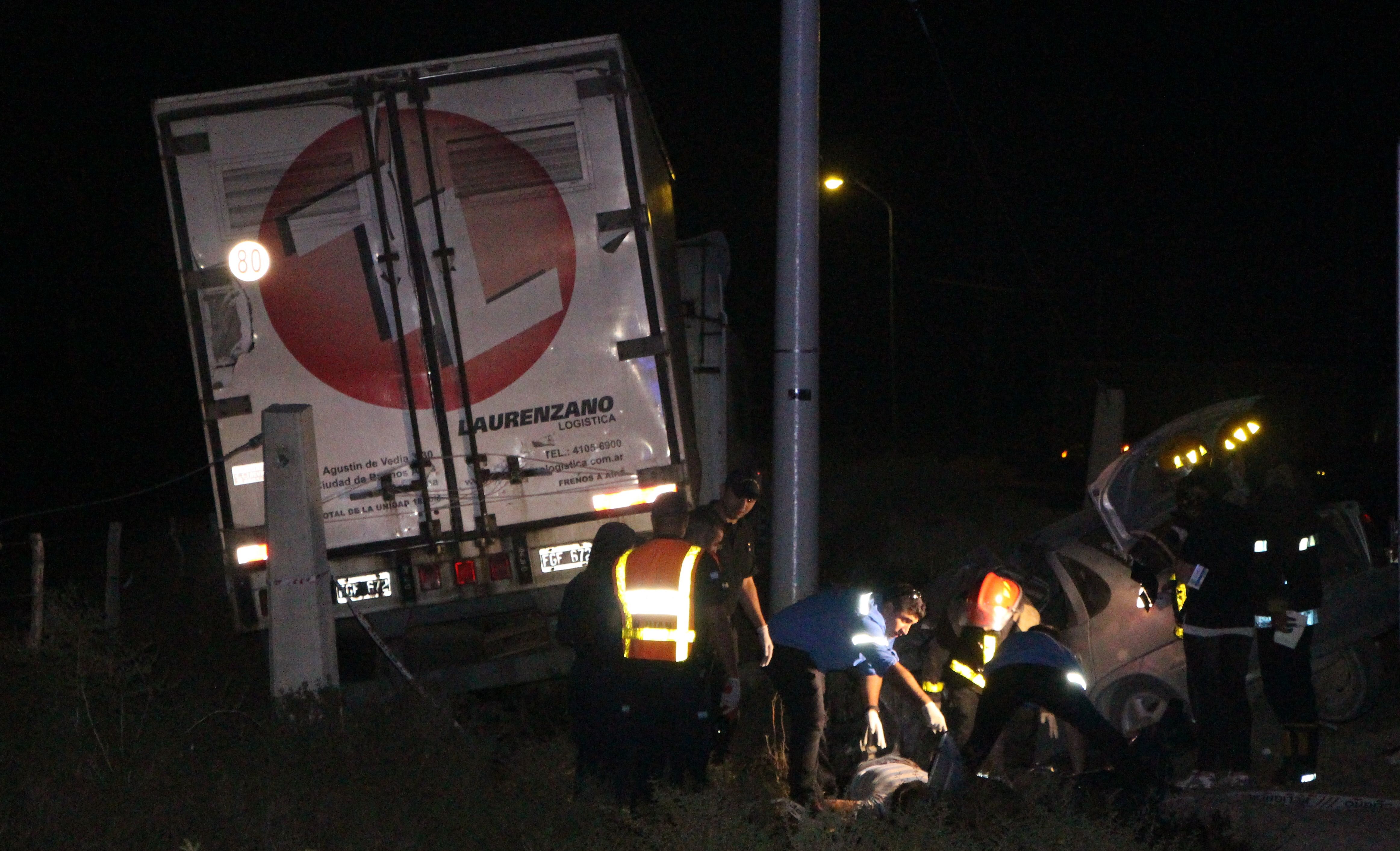 Este último accidente ocurrió alrededor de las 20,30 y le costó la vida a un hombre identificado por la Policía como Jorge Gregorio Agüero Oro, de unos 40 años. La versión policial es que la víctima, al parecer, volvía de 9 de Julio en un Chevrolet Corsa por la calle Zapata, y al tomar hacia el Oeste por la curva de la ruta 155 (también conocida como Calle 5), se topó de frente con un camión semirremolque marca Scania de la firma bonaerense ‘Laurenzano’.