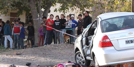 San Juan, 25 de mayo.- Un violento accidente entre un Chevrolet Aveo y una moto le costó la vida a dos personas. Además, dos menores de edad debieron ser asistidos, pero se encuentran fuera de peligro.