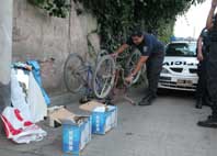 San Juan, 11 de abril.- Durante la tarde de hoy, minutos después de las 18, dos sujetos fueron detenidos en el momento en el que se trasladaban en bicicleta con varios bultos robados, en calle 25 de Mayo, al Este de Salta, de Chimbas.