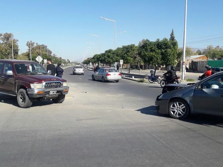 Pasado el mediodía, dos vehículos protagonizaron un choque en la rotonda de Conector Sur y calle Arenales, en Capital.