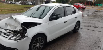 Con el cielo gris y el pavimento mojado, dos vehículos protagonizaron un choque en calle 25 de Mayo y España, en Capital. Pero pese al caótico escenario en el que impactaron, uno de los vehículos involucrados se dio a la fuga.