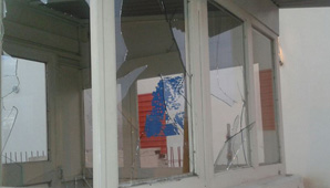 Como consecuencia del hecho vandálico, los vidrios de la guardia policial y de todo el costado norte del hospital quedaron destrozados.