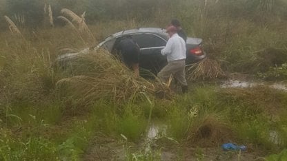 El auto en el que viajaba se salió de la ruta producto de la lluvia, pero tanto él como su esposa no sufrieron consecuencias.