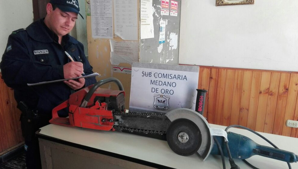 En distintos días, robaron una amoladora, una motosierra y una caja de herramientas. Lo curioso fue que siempre quedaba con llave el depósito del predio municipal José Dolores, en Rawson. Policías de Médano de Oro dirigidos por el subcomisario Godoy y el principal Aballay descubrieron que fue un sereno, lo apresaron y recuperaron dos de los aparatos.