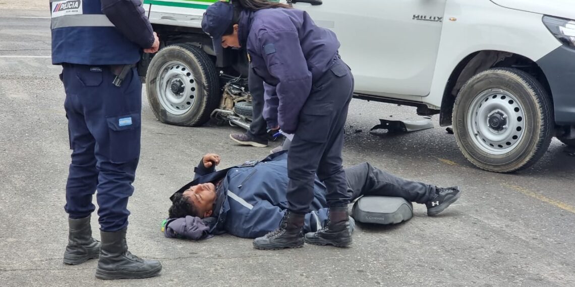 El rodado mayor pasó por encima al ciclomotor Corven 110cc. y hasta llegó a rozarle la cabeza al conductor identificado como Rodrigo Luna (35), pero afortunadamente el casco que lleva puesto le salvó la vida.