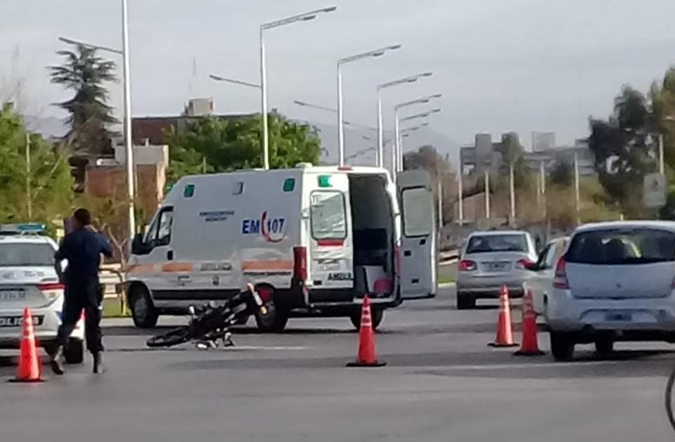 El choque se registró pasadas las 8 de hoy. El conductor de la moto, de quien no trascendió la identidad, quedó tendido en el suelo y fue asistido en la ambulancia, aunque según testigos no sufrió heridas de gravedad.