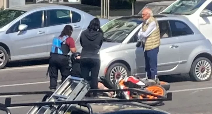 El motociclista, que iba acompañado por su novia en el rodado, cayó al asfalto después de impactar con su moto en la parte trasera del auto. Por precaución, el motociclista fue atendido por médicos del SAME y trasladado al Hospital Pirovano, donde fue atendido por heridas leves.