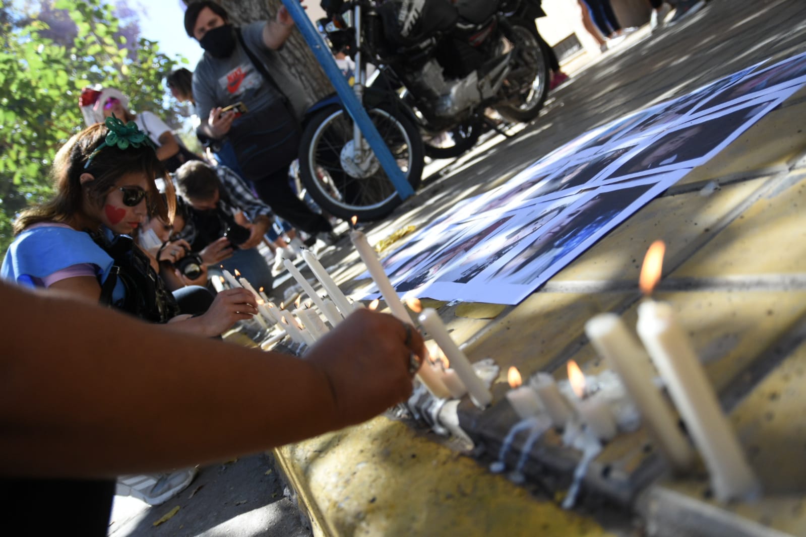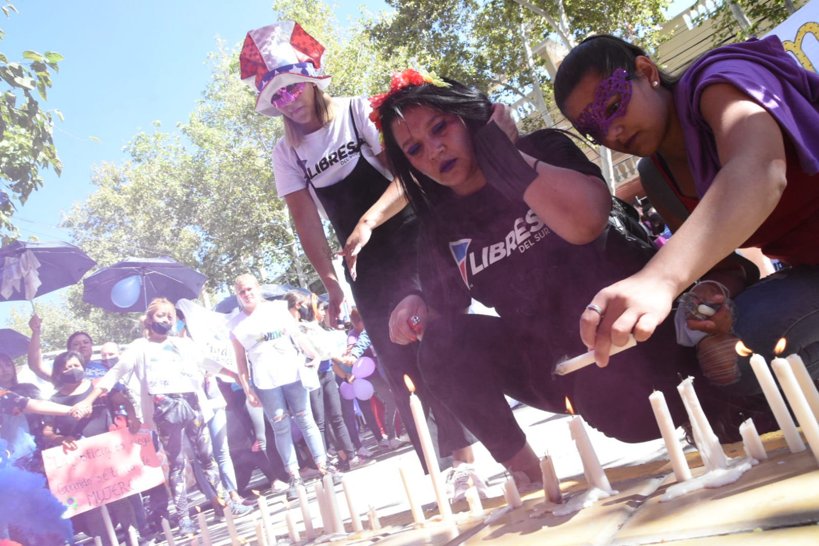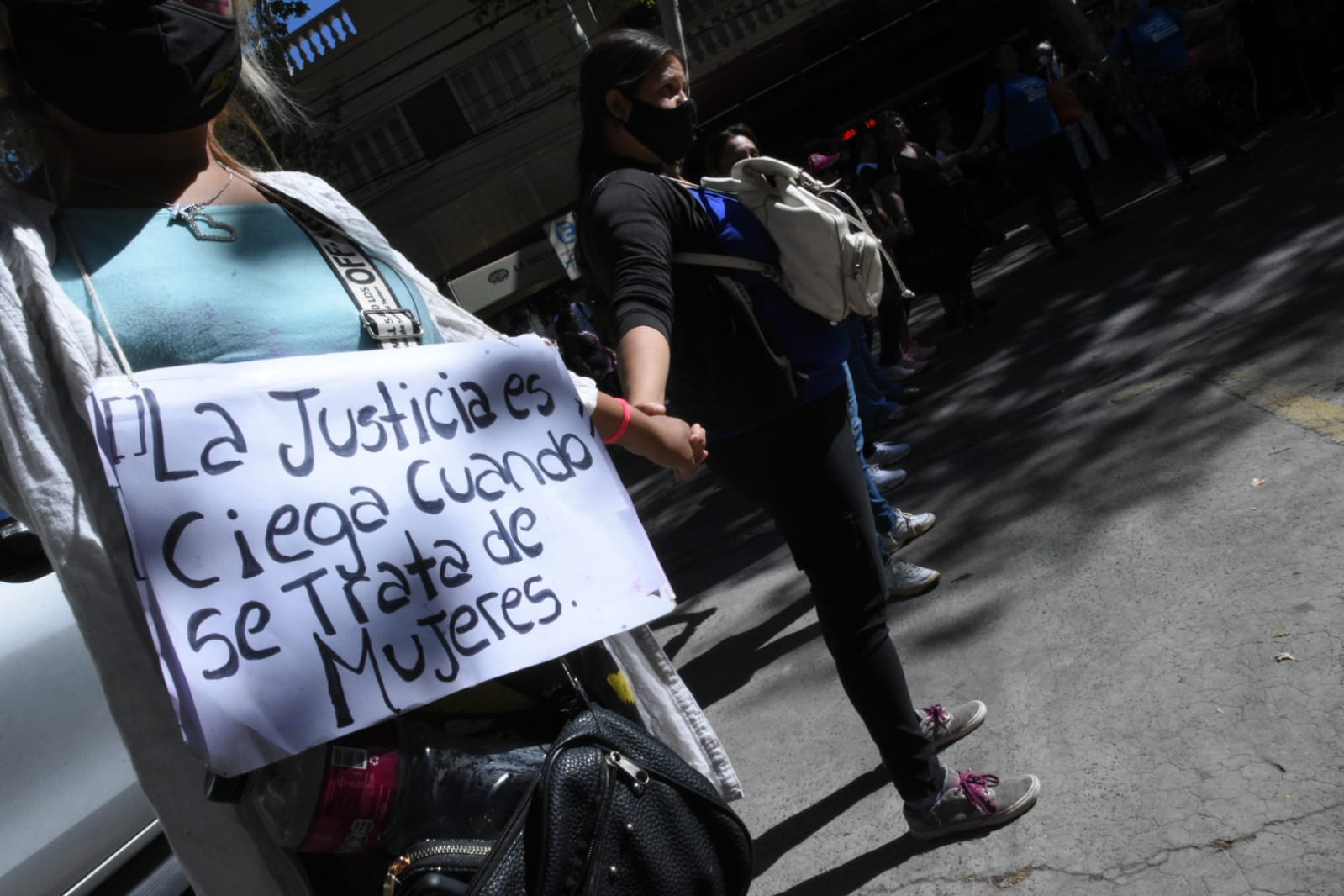 Mientras se desarrolla la audiencia, en las puertas de Tribunales se realizó una manifestación en el marco del Día Internacional de la Mujer donde agrupaciones sociales pidieron por el esclarecimiento de varios casos.