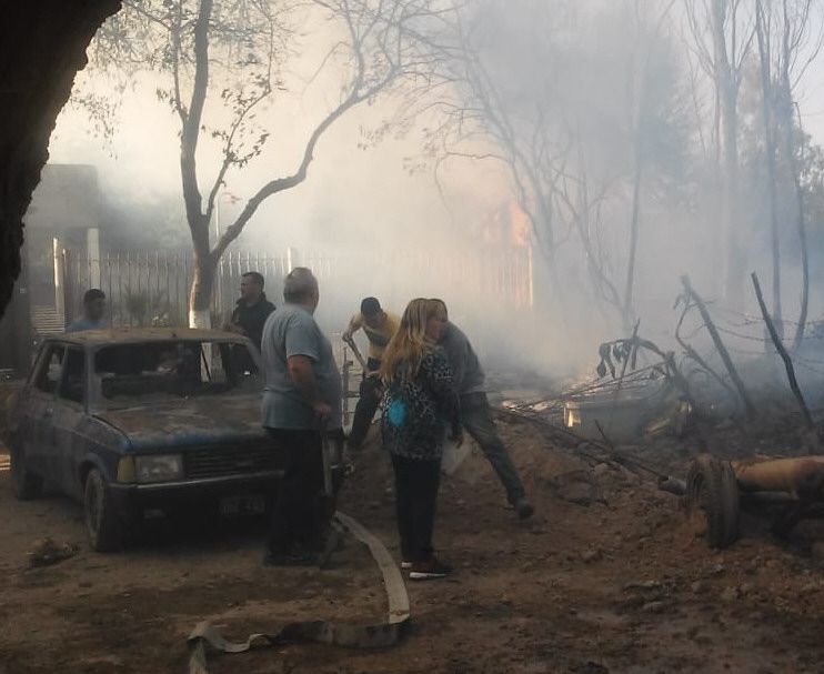 Un Fiat Europa y el techo de madera de un taller mecánico que funciona en una casa del Barrio 19 de Abril, en Chimbas, terminaron con daños a causa de un incendio que comenzó en unos cañaverales que lindan con esa propiedad, dijeron fuentes policiales. El siniestro ocurrió cerca de las 18 de ayer, sobre la calle Argentina, entre Chile y Brasil. Los vecinos ayudaron a apagar las llamas.