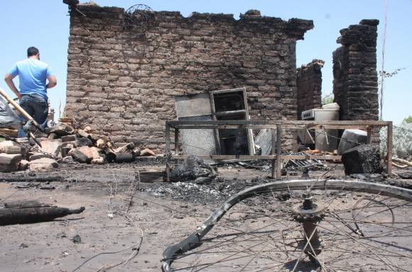 Una pareja se quedó ayer con lo puesto luego de que un incendio arrasara con todas las pertenencias que tenían en un humilde rancho ubicado en La Cañada, Albardón. Algunos vecinos trataron de extinguir las llamas, pero el fuego fue implacable y hasta mató a la mascota de los damnificados, señalaron las fuentes.