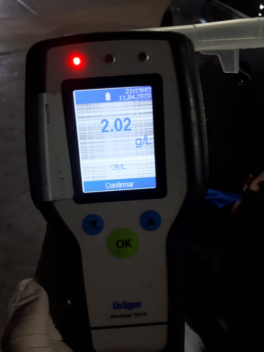 Cuando los uniformados lograron interceptarlo a los pocos metros realizaron el control de alcoholemia y el mismo arrojó que conducía con2.0 gramos de alcohol en sangre, es decir tres veces más de lo permitido.