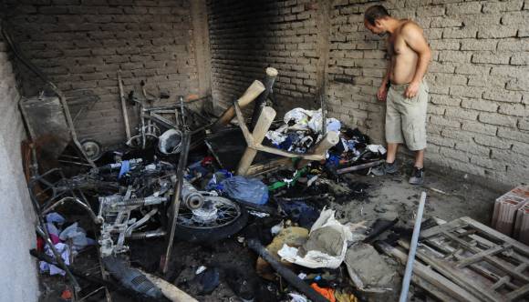 El hombre es oficial albañil y desde hace 2 años alquila con su mujer y sus 7 hijos varones (de entre 11 y un año) una pequeña casa situada en calle Lemos 817 Sur, Rawson. Ayer a las 15.20, Carrizo le hacía unos arreglos a su auto cuando dos policías de la Seccional 25ta se detuvieron y le avisaron que habían visto humo en el fondo de su casa. Al llegar a ese sector se toparon con una pieza en construcción que usan como depósito envuelta en llamas: ‘no entendía nada y cuando fuimos al fondo con los policías, el fuego llegaba al techo. Empezamos a echar agua de la pileta y gracias a Dios los bomberos de Rawson llegaron rápido, pero ya el fuego había destruido todo. Parece que Lautaro (7) sacó un encendedor y armó este lío’, señaló el albañil.