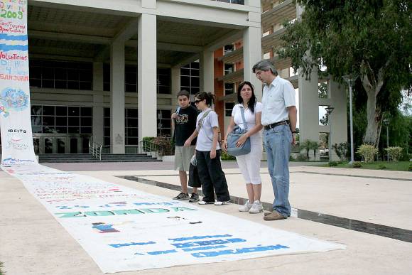 Casi a la misma hora que despedían a Paula Melina Manrique Villafañe (18), Cristian Yaín Varela Díaz (17) y Celia Janet Montaño Castillo (17) en el departamento Iglesia, en Capital también los recordaban con una gran bandera que fue desplegada desde lo alto del Centro Cívico (ver recuadro).