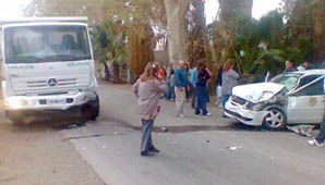 San Juan, 19 de septiembre.- Eduardo Sabala, de 44 años de edad, realizaba ayer su trabajo como remisero cuando sufrió un problema físico que le hizo perder el control del vehículo que conducía, impactando de lleno contra otro, en calle Ramón Franco, al Sur de calle 5, Rawson.