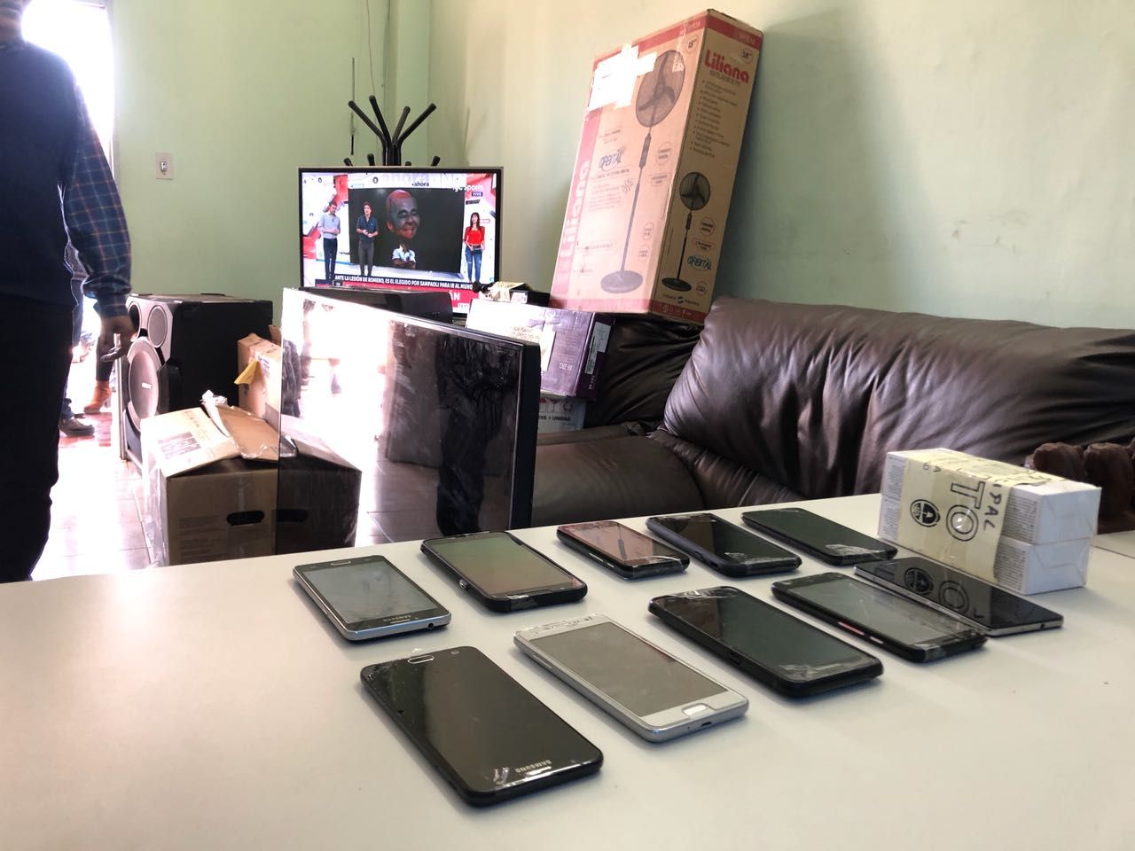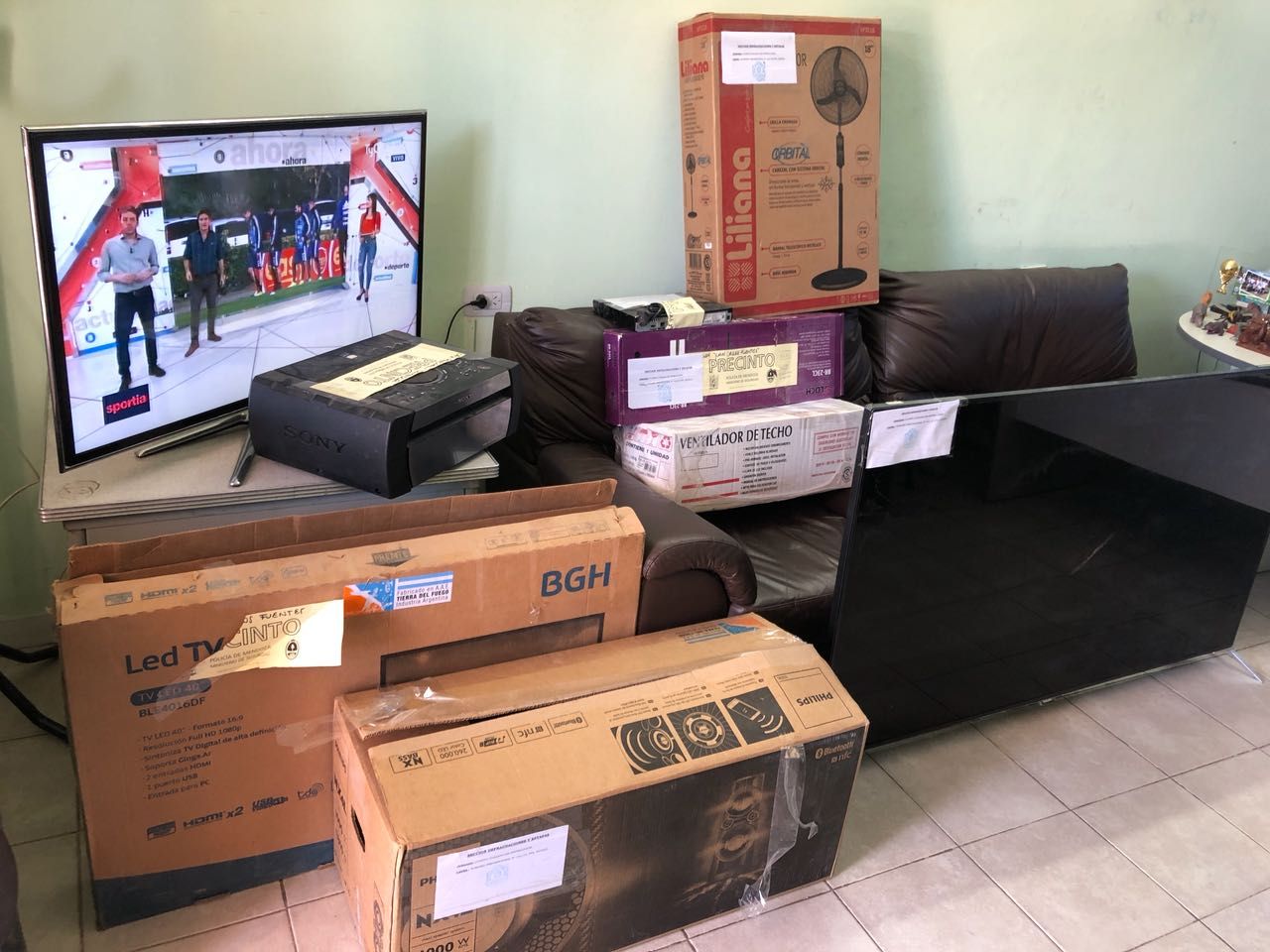En total, secuestraron la suma de 20.000 pesos, 12 teléfonos celulares, 6 televisores y "varios" equipos de música.