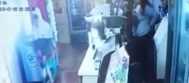 San Juan.- Las cámaras de seguridad del kiosco ubicado en Lemos y 6, en Pocito, que sufrió el robo de 3 celulares en la tarde noche de ayer jueves, captaron el momento del robo. En las imágenes se puede ver cómo el niño de 13 años ingresa al local con la capucha puesta, carga la pistola de guerra y amenaza a los vendedores para llevarse los teléfonos.