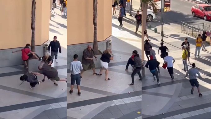 Las imágenes fueron tomadas en la tarde de este martes, cuando una pareja de argentinos fue atacada en calle 14 Norte por un grupo de jóvenes, y los golpearon para robarles sus pertenencias, entre gritos de desesperación, la mirada atónita de testigos y la ausencia de Carabineros.