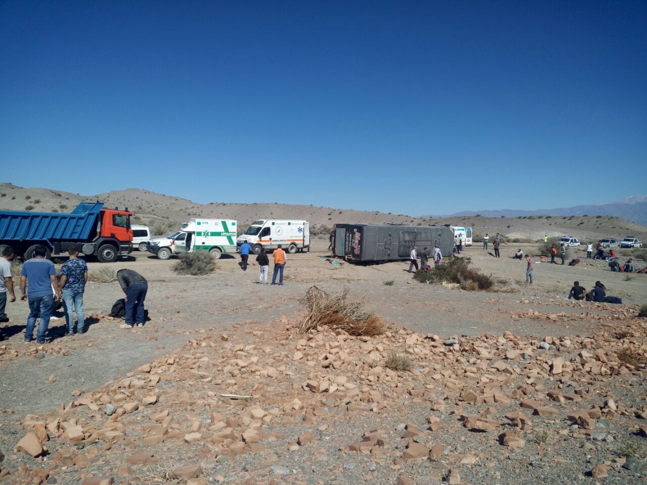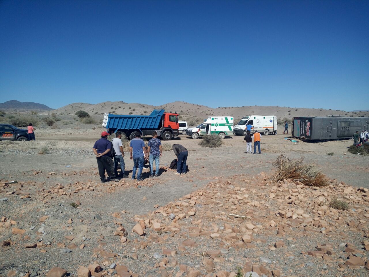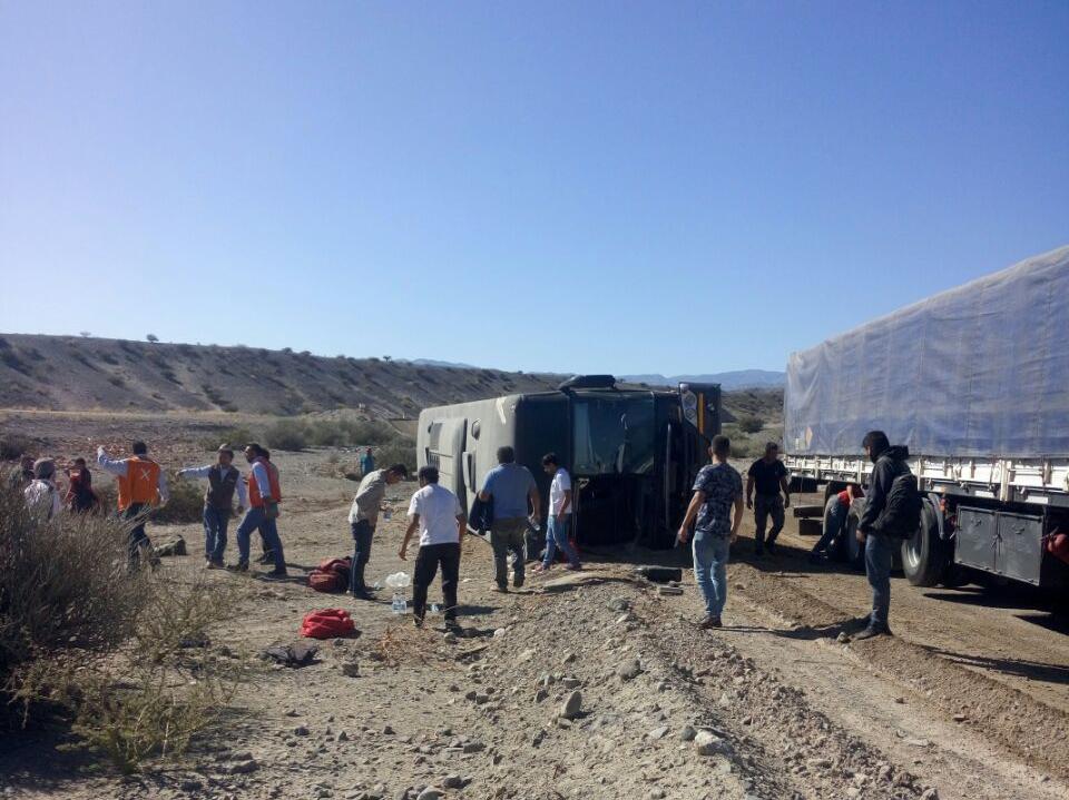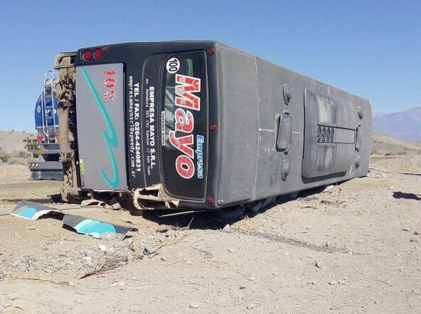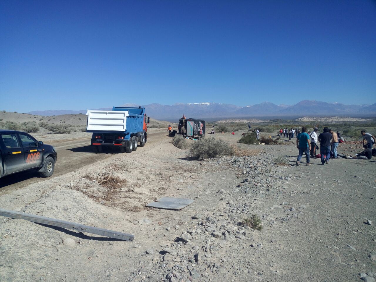 En un principio, producto de una falla mecánica, un colectivo volcó con 41 ocupantes en la ruta 430, en Iglesia. Del total, 39 iban a trabajar en las minas.