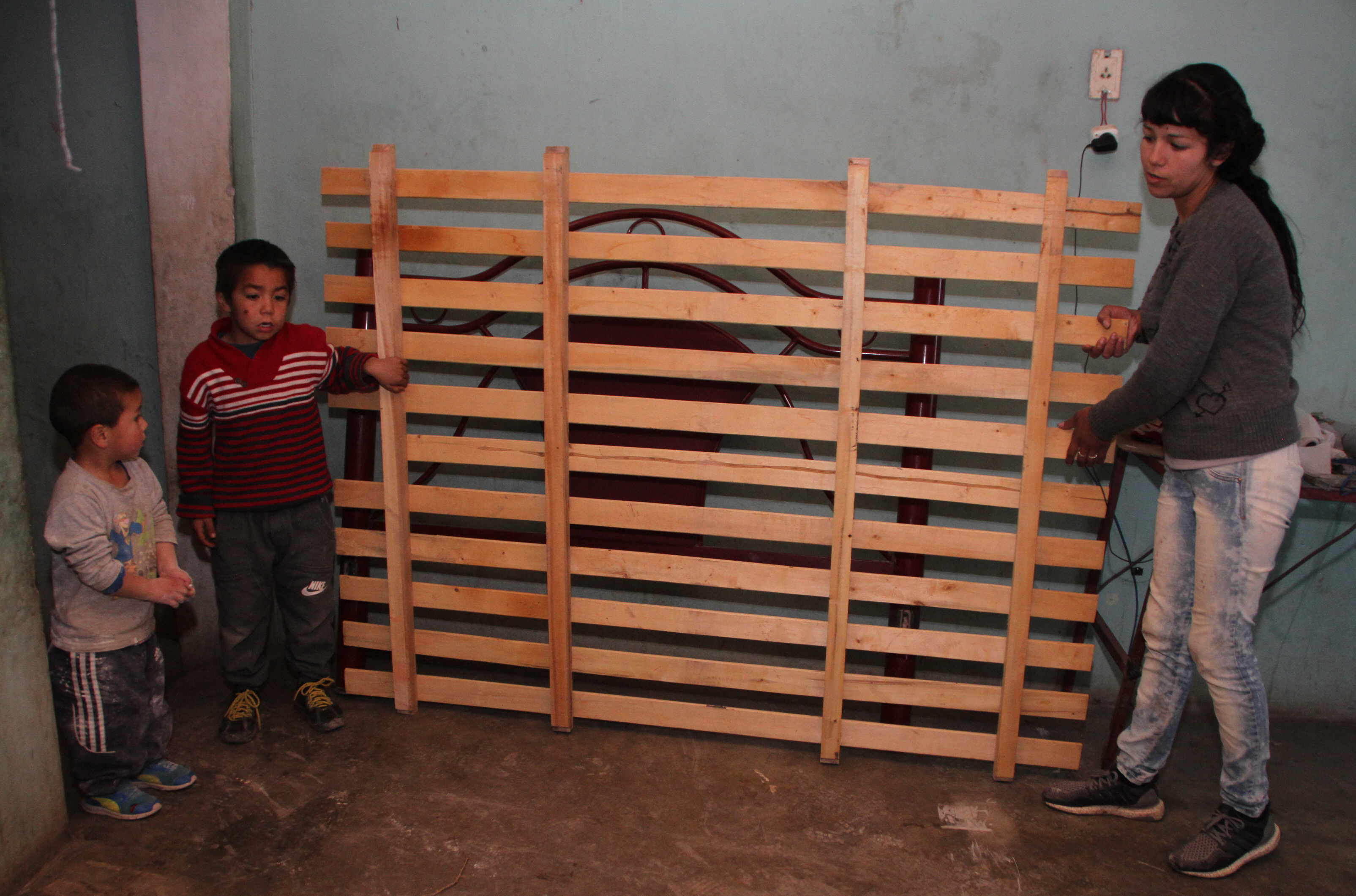 Lo que le dejaron. Yésica Pizarro y sus hijos trataban de poner en su lugar lo poco que les quedó. Esa cama fue recuperada gracias a que ella llegó a su casa cuando los ladrones se la estaban llevando.
