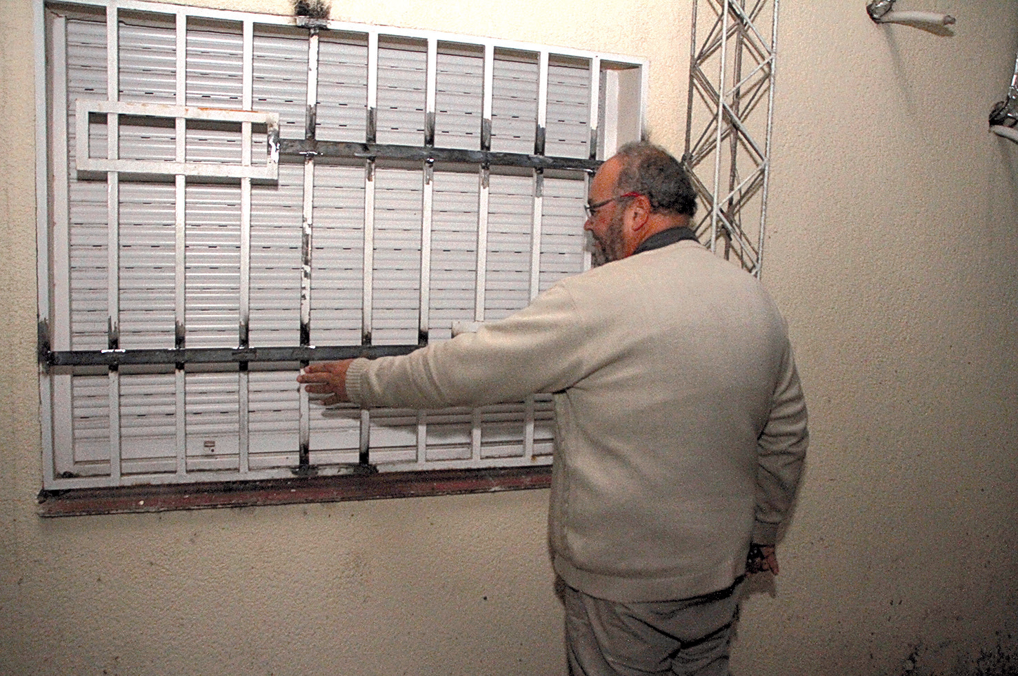 Rendido. Mauricio Korich señala la ventana por donde se colaron los delincuentes, cuyas rejas ayer hizo reforzar. El empresario calero ayer se mostró resignado y temía que se le vuelvan a meter.