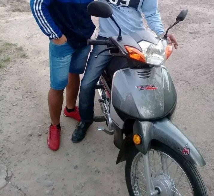 Se trata de una Motomel Blitz 110 cc con pechera gris. Además, en la moto estaba toda la documentación del rodado como también la del joven.