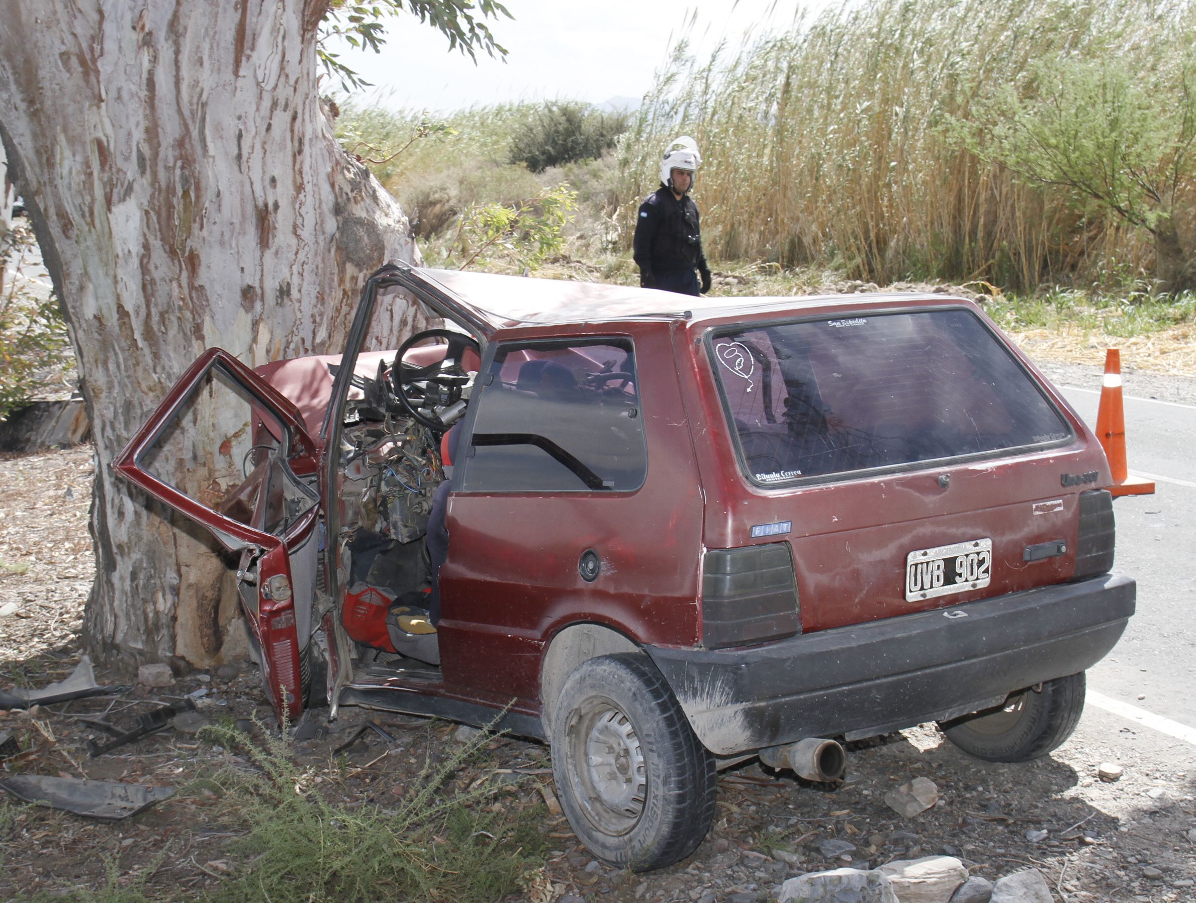 Pero cuando transitaban en un tramo comprendido entre Olivera y Nacional, Oyola perdió el control del auto por alguna razón (ayer desconocida), se cruzó de carril y se estrelló a elevada velocidad contra el árbol.