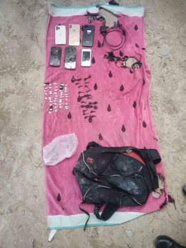 En el transcurso del operativo, se logró el secuestro de varios elementos, incluyendo teléfonos marca iPhone (11 Pro y SMX Pro), Samsung Galaxy (A22), Huawei, mas un cargador y una mochila.