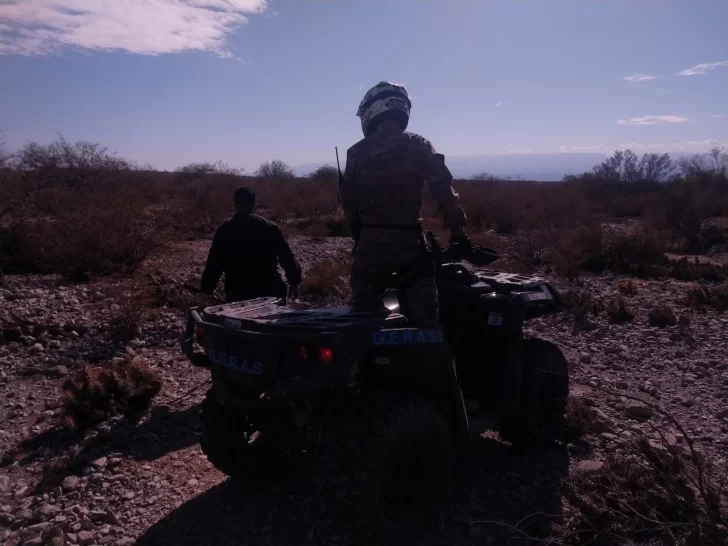 Posteriormente, realizaron un rastrillaje a pie, en cuatriciclos y con drones en un radio de trescientos metros a la redonda a fin de detectar a los canes, encontrándose un rastro de varias huellas de perros que se dirigian hacia el Suroeste.