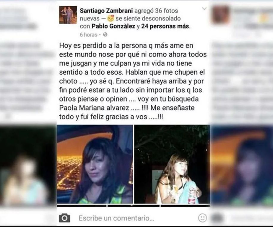 Las sospechas en su contra surgieron apenas tres días después de la desaparición de la joven de 21 años. En ese momento Zambrani hizo una insólita publicación en su muro de Facebook en la que se despedía de Paola como si ya supiera que estaba muerta, cuando todavía la buscaban viva.