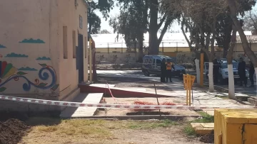 Momentos de dramatismo se vivieron cuando personal de la Municipalidad de Santa Lucía que trabajaba haciendo pozo en el frente de un jardín de infantes se topó con un cráneo.