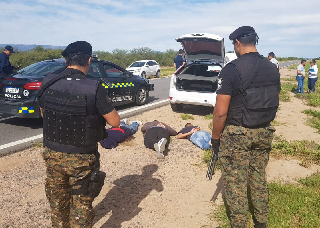 Los acusados iban en un Ford Focus blanco y habían evadido el control de Las Trancas, por lo que allí se inició una persecución que terminó unos 3 kilómetros después, con todos apresados. En el vehículo llevaban dinero.