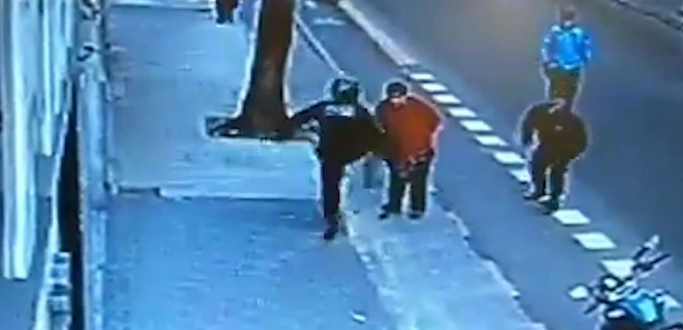 Uno de los oficiales le pega una patada, por lo que el hombre se desploma sobre el asfalto de la bicisenda. Fue trasladado con vida al hospital, donde murió.