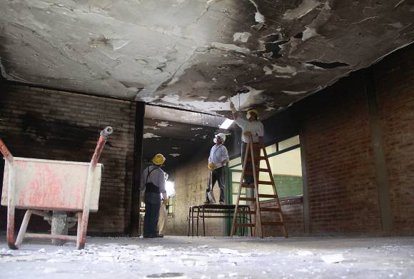 El siniestro dejó serios daños en la galería interna del ala Norte del establecimiento de calle Laprida y San Martín, cerca del centro de Caucete. El edificio es compartido con el Colegio Santa María. La estructura de madera del kiosco quedó convertida en cenizas. El fuego también afectó el cielo raso, hubo rotura de vidrios en el aula del 6 año y las paredes de todo ese sector terminaron negras por el hollín. Debido a eso fue que ayer no pudieron dar clases en tres aulas y reubicaron a los alumnos en otros cursos para continuar con las actividades normalmente.