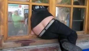 Río Negro, 22 de mayo.- Cuando efectivos policiales llegaron a una carnicería de esta ciudad no lo podían creer. Y no era para menos: una mujer estaba atorada en una ventana de la parte de atrás del local, en el que, al parecer, intentó robar.
