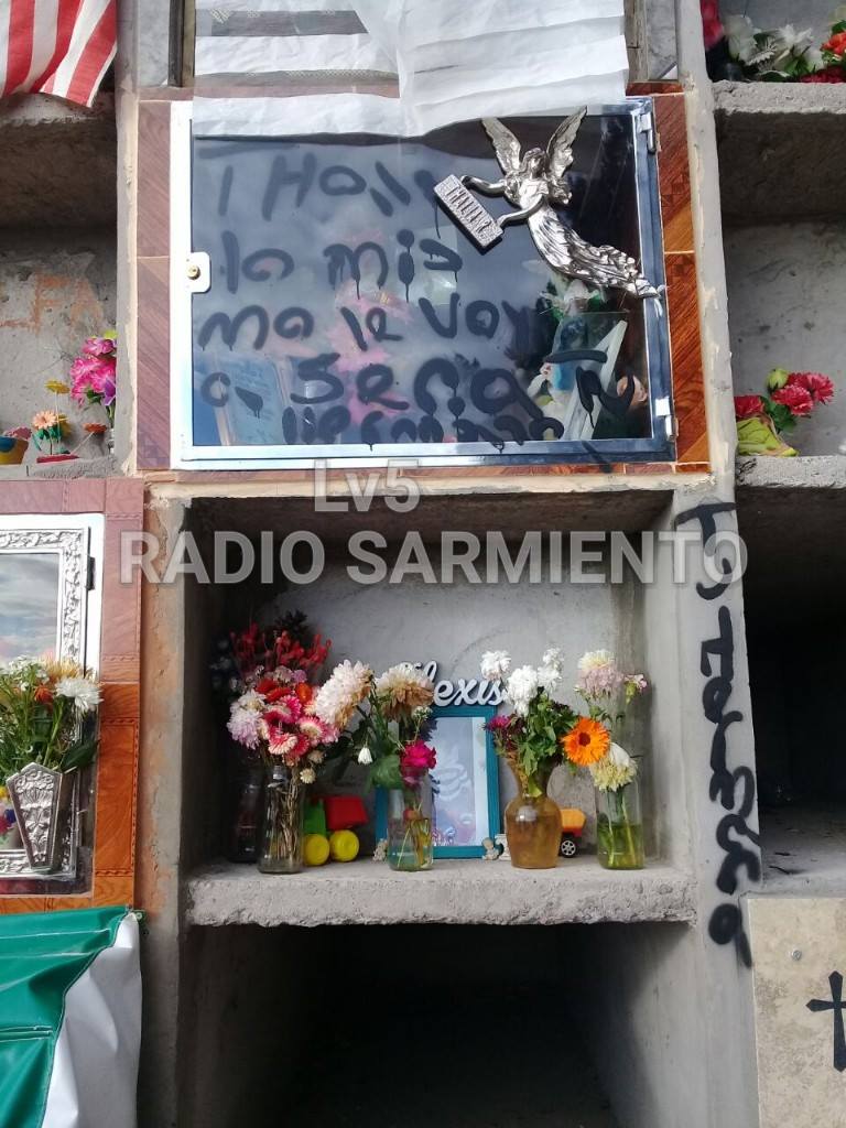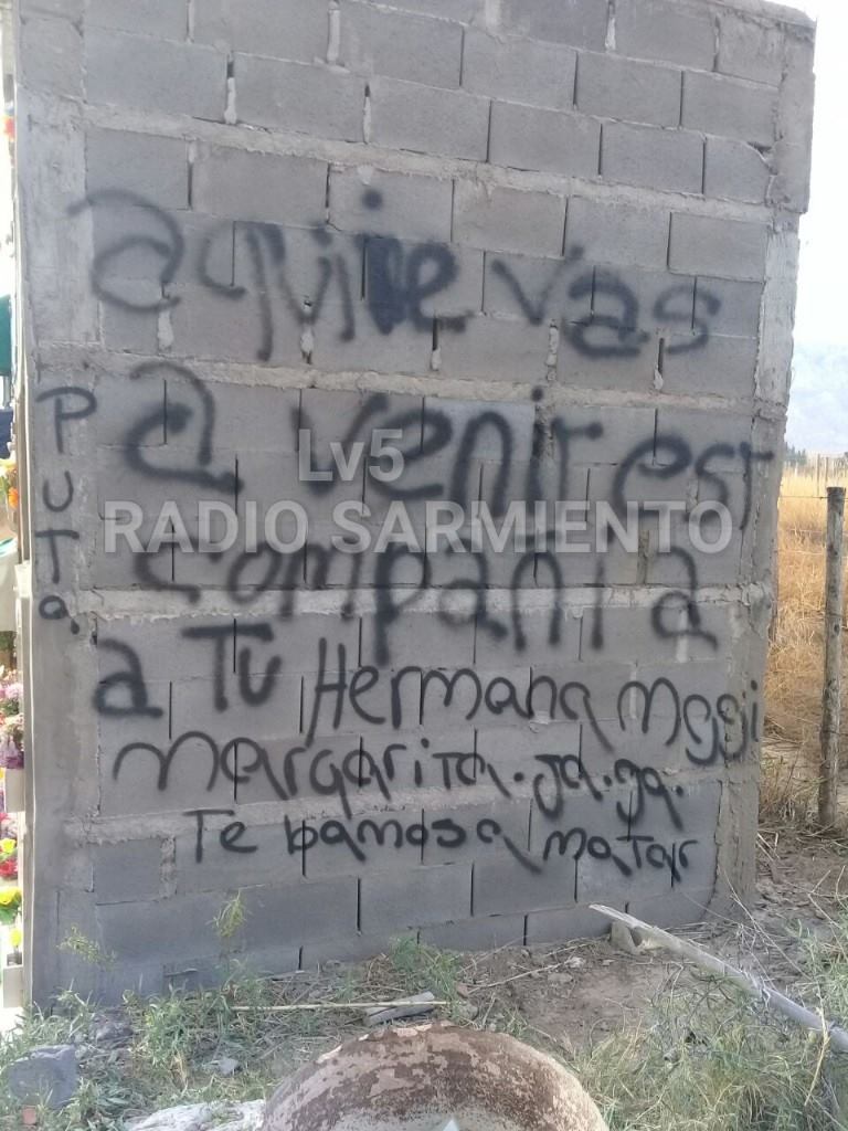 En las últimas horas, el caso se tornó aún más tenebroso, luego de que desconocidos realizaran pintadas con escalofriantes amenazas de muerte sobre la tumba de Talía, dirigidas a su hermana Mayra.