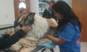 “Drupy”, tal como su dueño lo llamaba, fue rescatado y llevado a la Clínica Veterinaria Fernando Huarte para que recibiera la atención correspondiente. El perro quedó internado en observación, luego de que se le realizara una ecografía y una serie de estudios. Según los vecinos "estaba en estado de shock en primer grado y hay que realizar placa de columna".