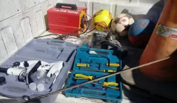 Policías de la subcomisaría de Villa Mercedes, Jáchal, al mando del comisario inspector Carlos Torres, detuvieron ayer a un sujeto de 30 años de apellido Santana, porque en su casa de la localidad de La Frontera hallaron todas las cosas que llamativamente se venían perdiendo en la escuela Marcos Sastre de esa zona. Un grupo de pesquisas al mando del oficial Robledo logró establecer que Santana podía tener esos objetos porque había trabajado como ayudante de albañil en las refacciones del establecimiento. Y ayer lo confirmaron, cuando allanaron su casa y hallaron un costoso microscopio, pelotas, herramientas, una máquina de soldar y el resto de las cosas hurtadas.