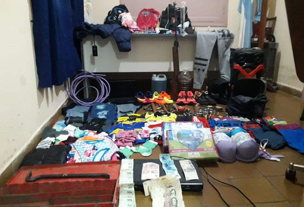 Los policías de la seccional 22da de Iglesia, que dirige el subcomisario Luis Gordillo, esclarecieron, con la detención de Sasín y su mujer de apellido Olmos, el robo a la tienda "Mis Frutos" el pasado fin de semana en calle Santo Domingo, en Rodeo. En la búsqueda de los sospechosos, también dieron con un sujeto de apellido Pantano, con pedido de captura de Buenos Aires por múltiples estafas, dijeron fuentes policiales. Los pesquisas (oficiales Esquivel, Páez y Aguirre, el cabo Paredes y el agente Esquivel) recuperaron toda la ropa robada valuada en $40.000, más de $4.500 y una escopeta, un celular y un parlante comprado con el dinero robado.
