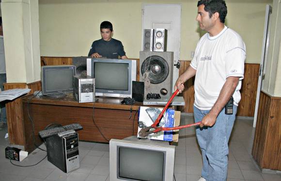 Policías de calle al mando del oficial Vicente Alvarez (comisaría 6ta., dirigida por el comisario Adolfo Jofré) apresaron ayer a dos supuestos arrebatadores de 19 y 15 años, y luego secuestraron en el Lote Hogar 35 un MP4, un minicomponente, un DVD y una licuadora. No fue todo: en un allanamiento en el barrio José Dolores, Rawson, secuestraron 14 varillas de hierro, dos televisores, dos parlantes, un DVD, una computadora, un centro musical, una Play Station y un joystick supuestamente robados. Esperan que las víctimas los reconozcan.