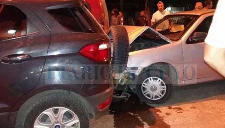 San Juan.- Durante la madrugada de hoy se produjo un impresionante choque en cadena, que involucró cuatro autos y dejó dos personas heridas. El hecho ocurrió sobre calle General Acha, pasando Los Cóndores.