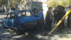 Producto del fuerte choque, el Renault 12, que trasladaba a una familia completa, terminó en dirección contraria a la que viajaba y arrancó el poste de un semáforo ubicado que estaba ubicado en el boulevard de avenida Córdoba.