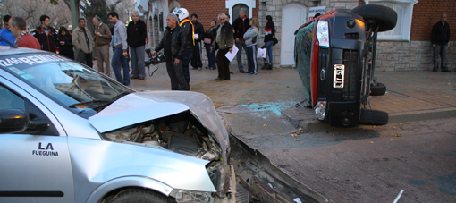 El hecho tuvo como protagonista a un remis, que circulaba por calle Aberastain hacia sur, mientras que una camioneta Ford Eco Sport se dirigía hacia el oeste por calle Santa Fe. En esa esquina los autos colisionaron y la camionera terminó sobre la vereda suroeste, justo detrás de la Escuela Industrial.