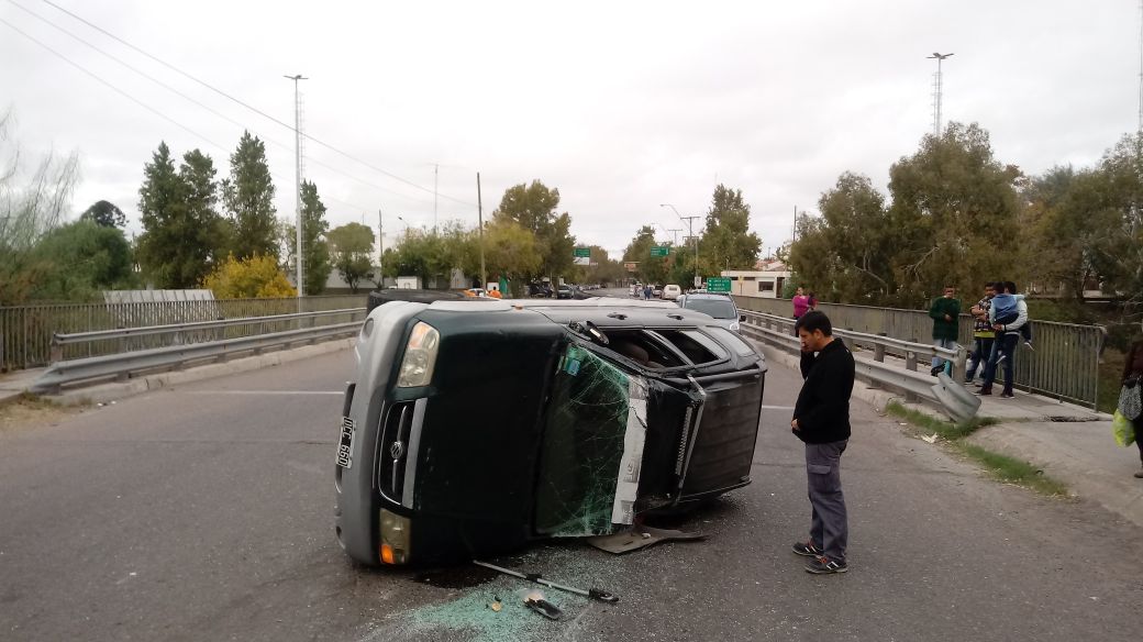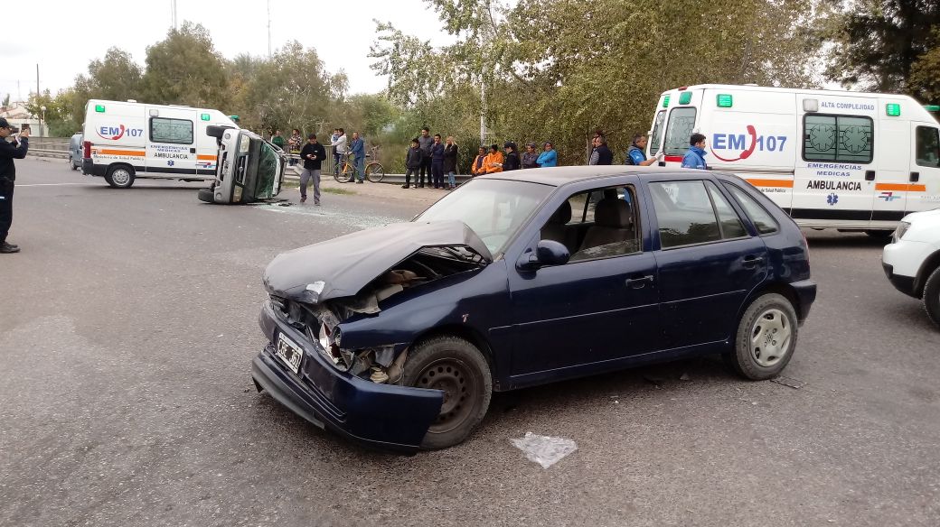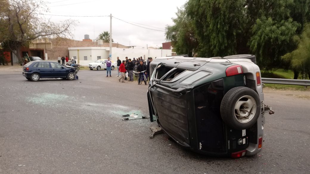 Un Volkswagen Gol y una Suzuki Grand Vitara impactaron de lleno, causando el vuelco de la camioneta, que además sufrió la rotura del parabrisas.