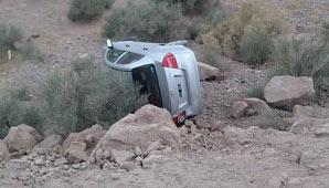 San Juan, 15 de diciembre.- Durante la noche de ayer se produjo un impresionante vuelco sobre Ruta 60, justo frente a la fábrica de ladrillos cerámicos San Juan. Por motivos que se desconocen, el conductor perdió el control de su Chevrolet gris y volcó, cayendo por un pequeño barranco.