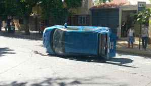 Según informaron fuentes policiales, el Chery circulaba de Oeste a Este y chocó con un Fiat Palio que transitaba por calle Güemes. Como consecuencia, el primer vehículo volcó e impactó contra un Escort que estaba estacionado.