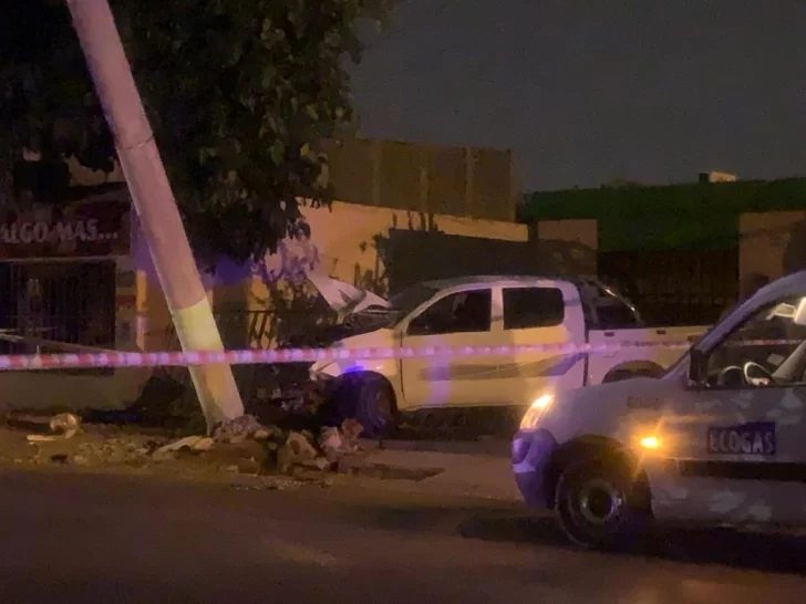 Por razones que se investigan, el conductor de una camioneta Toyota Hilux perdió el control del vehículo, realizó una maniobras en la calzada y fue a parar contra un poste de cemento de alumbrado público, dejándolo al borde de la caída.