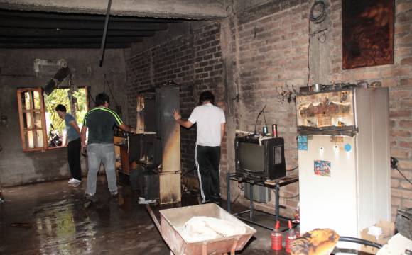 Esto sucedió ayer a las 17.30 en la casa de la familia Castillo De los Ríos en calle Virgen del Valle al 1964 del B° Nazareno. Como llovía, metieron sus tres motos a la cocina comedor. ‘Yo ví un charco en el piso y pensé que se estaba lloviendo adentro. Cuando me di cuenta que una de las motos pérdidas nafta, ya vi el fogonazo’, relató Ricardo Castillo. Es que el gas del combustible tomó contacto con las llamas del calefactor y eso produjo la explosión y el posterior incendio. Se quemaron el calefactor, dos motos, dos televisores, un aire acondicionado, un centro musical, numerosos muebles y el techo de esa dependencia. Otros artefactos se dañaron por el calor.