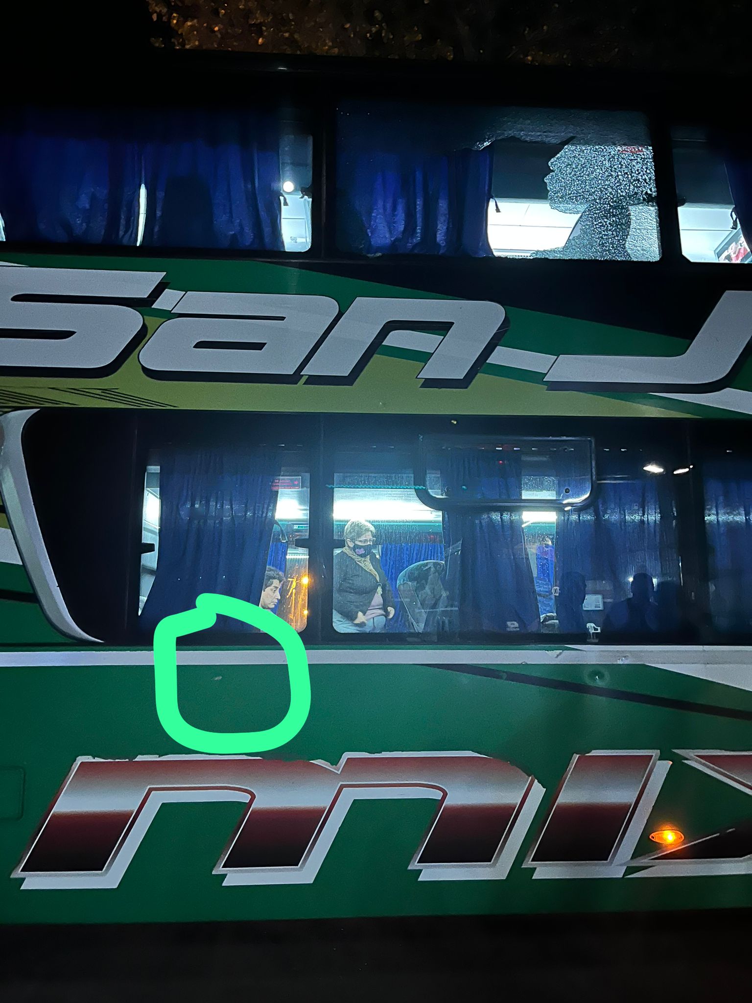 El vehículo siguió hasta la terminal puntana con al menos una ventanilla destruida y varias marcas en la chapa, y allí le realizaron una reparación que le permita seguir el viaje.